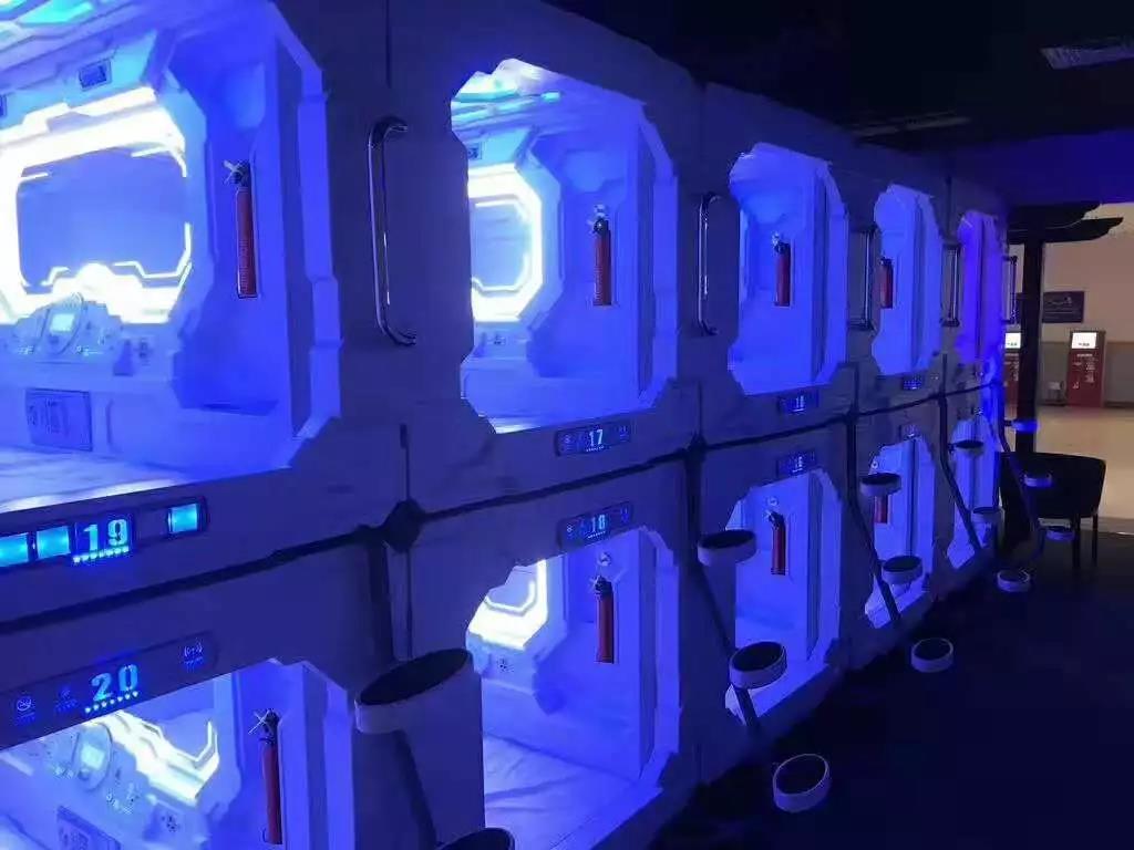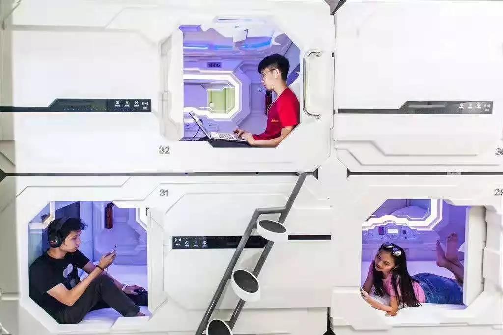 每间空调胶囊间均配有安卓电视、保险箱、共用储物柜以及共用浴室设施。